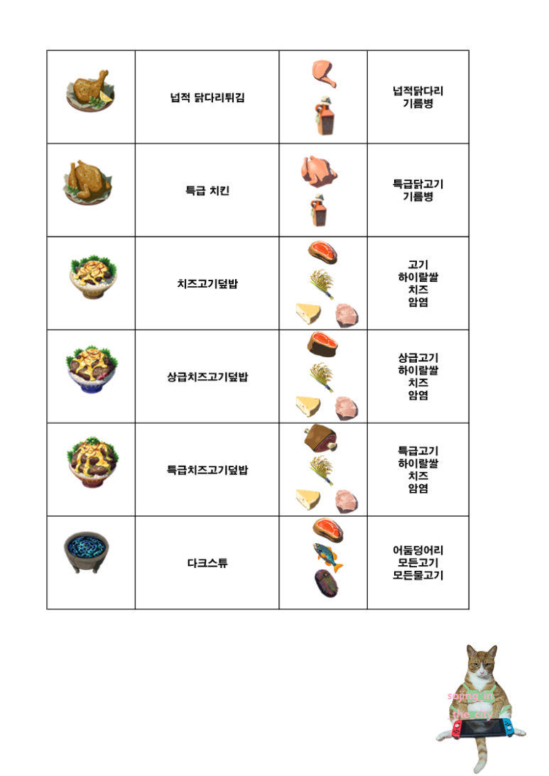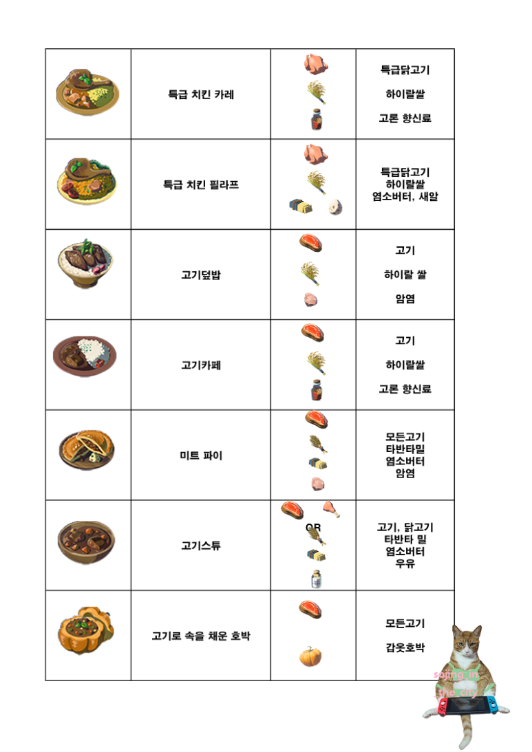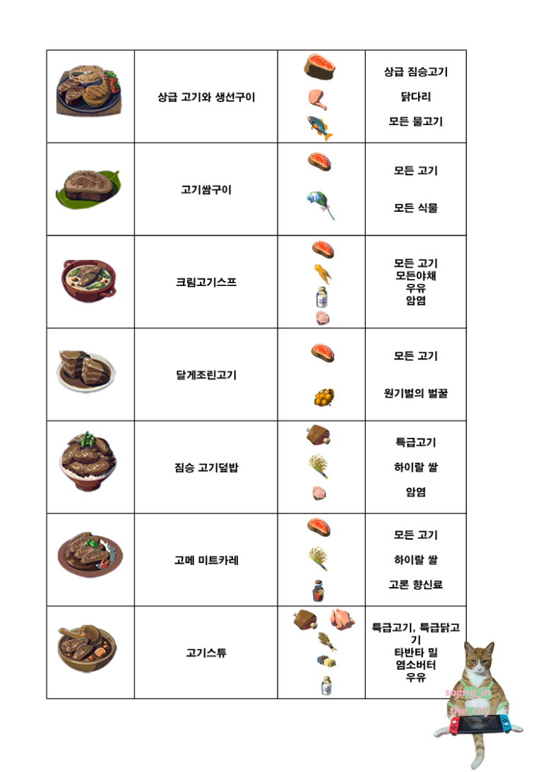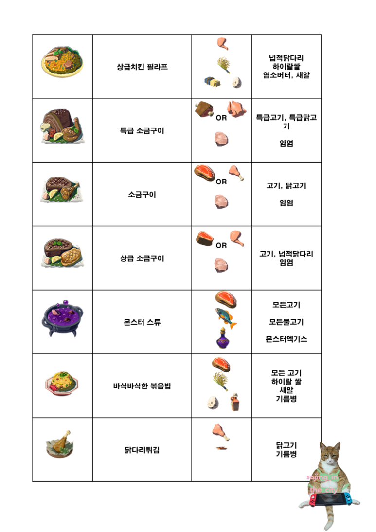[젤다의 전설 - 왕국의 눈물, 티어스 오브 더 킹덤] 레시피(고기 요리 편)